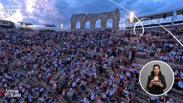 Seit über 100 Jahren lädt die Stadt Verona zu einem großen Operfestival. Nun möchte das Projekt „Arena per Tutti“ dieses Festival für alle Menschen zugänglicher machen. Auf Deutsch heißt das Projekt die Arena für alle — das gilt auch für gehörlose Besucher:innen! Die Trailer zu den Opern-Vorführungen sind in deutscher und italienischer Gebärdensprache, sowie International Sign verfügbar.