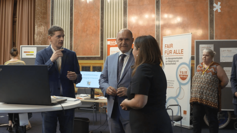 Bis zum 7. September ist die Ausstellung „Contact M“ im Wiener MUMOK zu sehen. Die Künstlerin Park McArthur, selbst Rollstuhlfahrerin, setzt sich mit alltäglichen Gegenständen aus dem Leben von Menschen mit Behinderungen auseinander. Besonders bemerkenswert ist, dass die Ausstellung gleichzeitig auch im Museum Abteiberg in Deutschland gezeigt wird. Dadurch ist die „ganze“ Ausstellung immer räumlich unzugänglich, was wiederum die fehlende Barrierefreiheit in der Gesellschaft widerspiegelt. Wir waren bei der Eröffnung mit dabei.